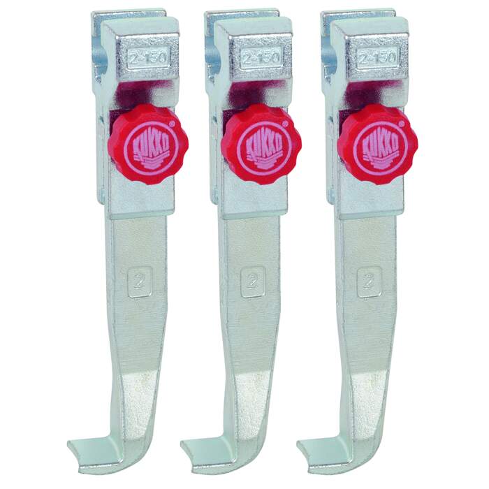 The set of three quick-adjustable standard pullers is suitable for 3-arm universal pullers. The robust pullers guarantee particularly safe and user-friendly extraction of bearings, gears and pulleys.