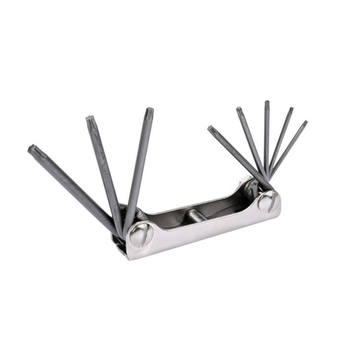 The TX manual folding holders of the 212 series are used for operating screw heads that are difficult to access. Unlike Allen spanners, the Torx profile grips centrally and thus ensures easier working and less wear. The 212 series is inexpensive and compact.
