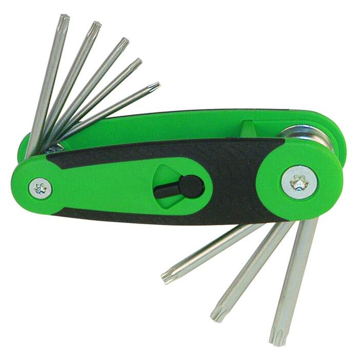 The TX manual folding holders of the 212 series are used for operating screw heads that are difficult to access. Unlike Allen spanners, the Torx profile grips centrally and thus ensures easier working and less wear. The 212 series is inexpensive and compact.