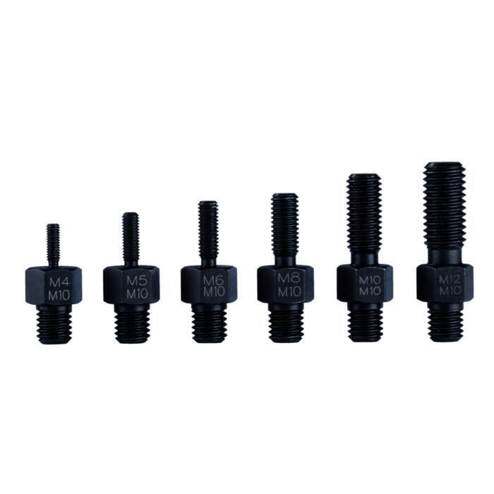 The thread insert set for slide hammer or counter supports of the 22 series is used for extracting parts with centric threaded holes in crafts, industry and workshops. Six different threads for different situations and sizes are available in the set