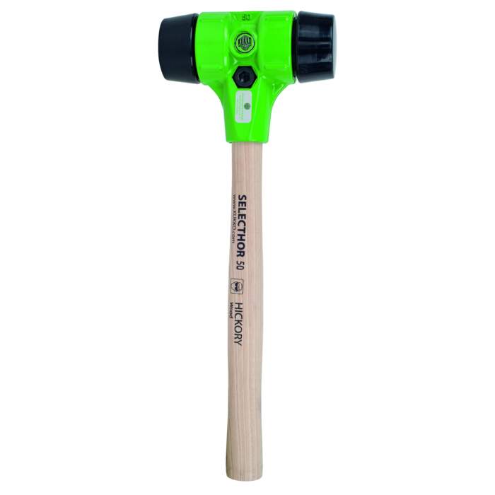 The Selecthor GU soft-face hammer with rubber impact inserts can be used to precisely work, position and align impact-sensitive surfaces. The impact inserts are low-wear, damping and last longer than a conventional rubber mallet.