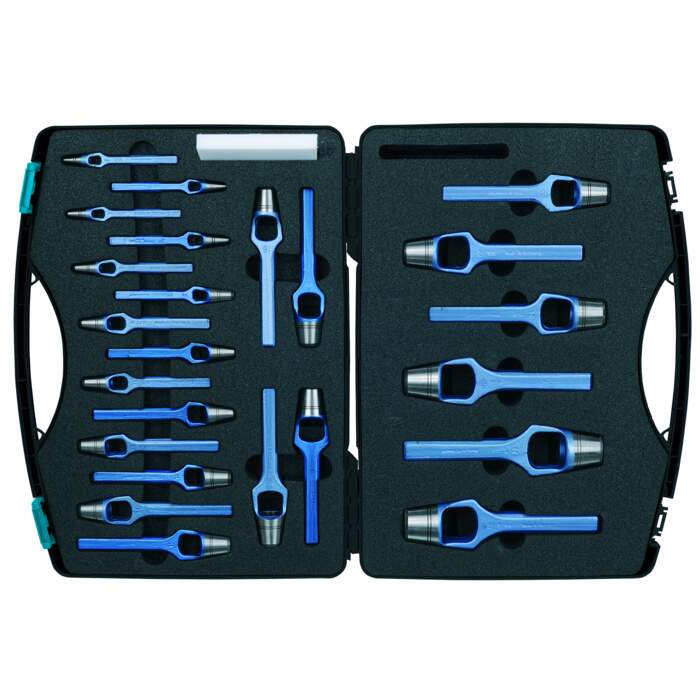 The 24-piece set of Henkelli irons with different diameters is used for punching or making seals and gaskets from rubber, leather, felt, plastic, cork and various materials. Thanks to the strong design, various materials can be processed.